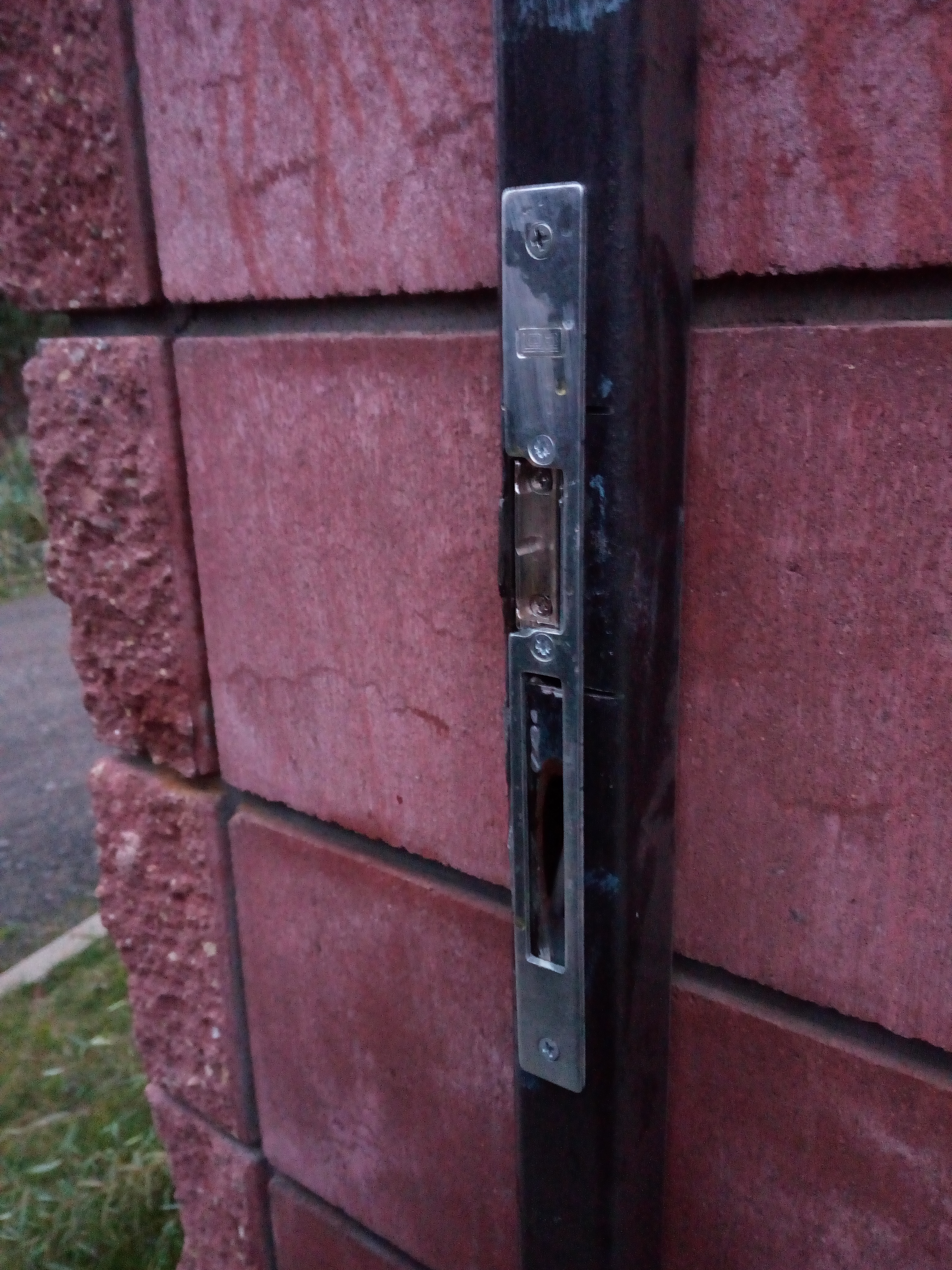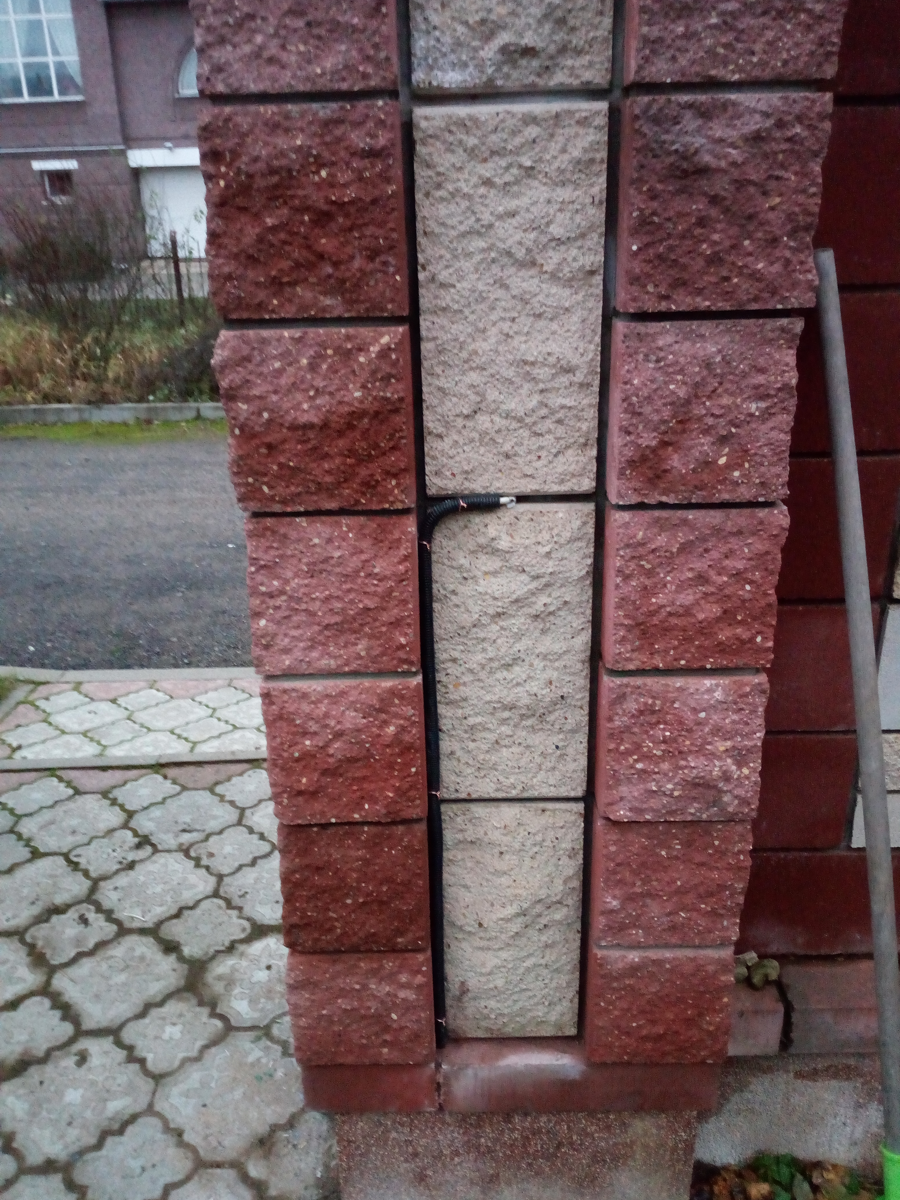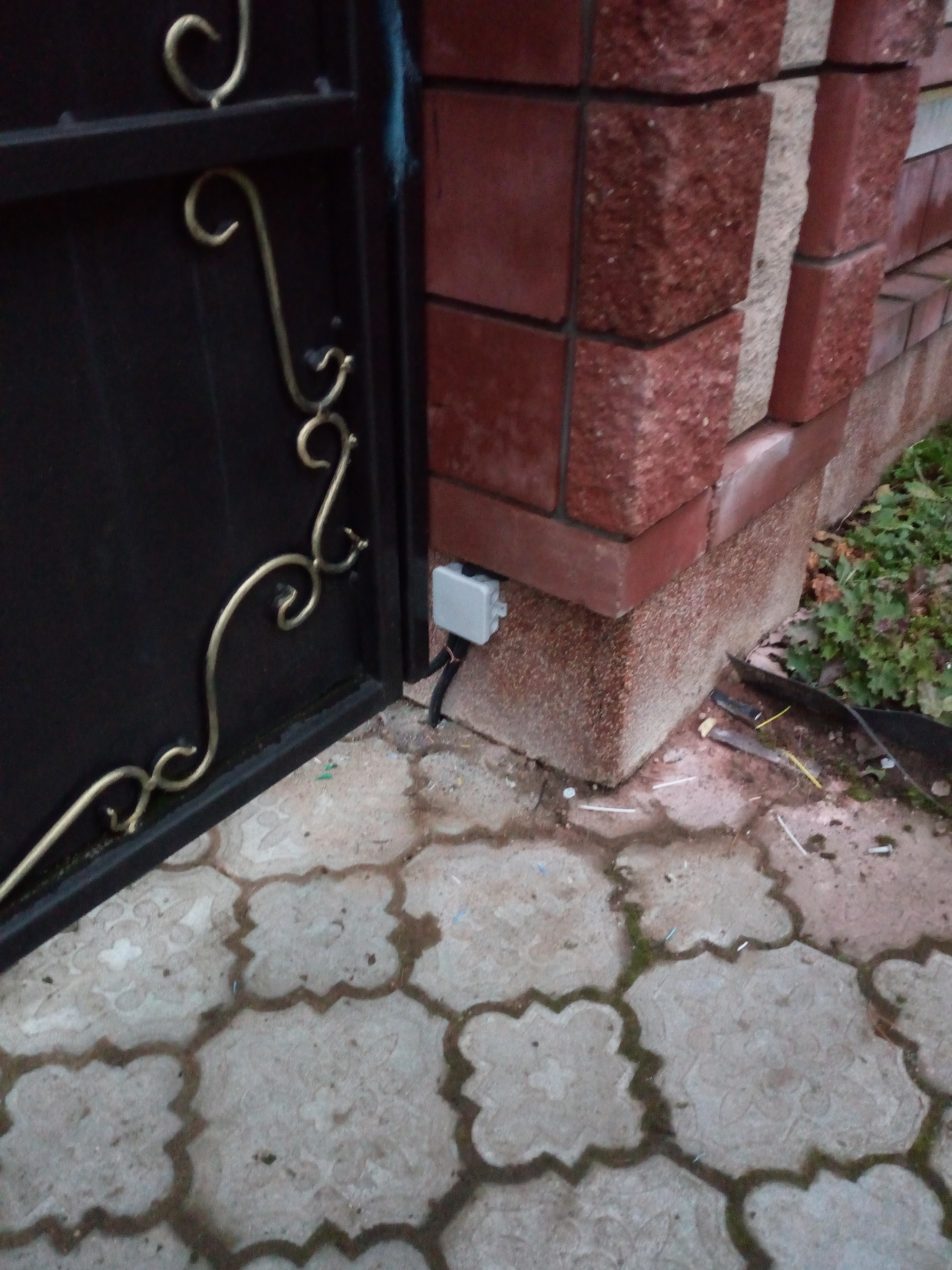Монтаж электромеханической защелки, производили демонтаж брусчатки, укладку кабелей в трубе.